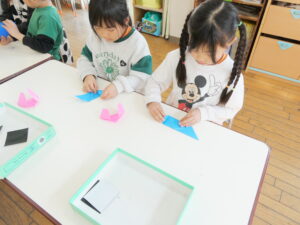 3月3日 ひなまつり会 保育園の玄関に飾られたひな人形を見て「もうすぐひなまつり‼」と、今日のひなまつり会を楽しみにしていた子どもたち。 クイズ形式の由来のお話では「さんにんかんじょ‼」「ひなあられ‼」と元気に答えていましたよ。 ★ひな人形 製作風景★ ひかり組さん ほし組さん つき組さん うみ組さん そら組さん りく組さん 2026/3/4